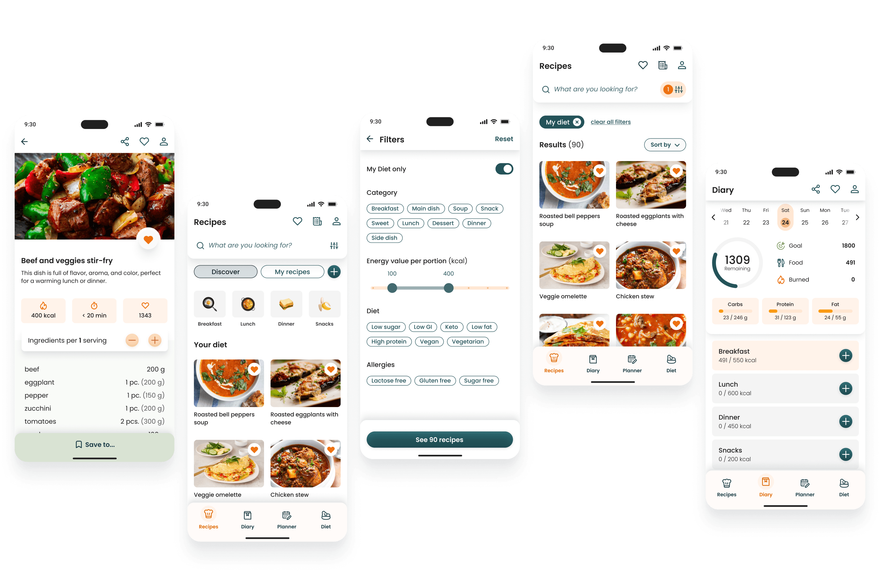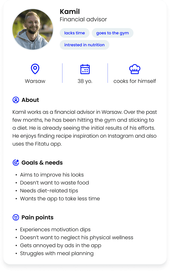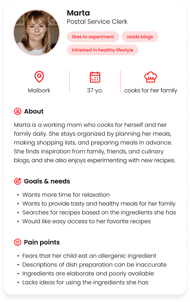 Based on the research, we created 2 personas reflecting two target user groups: those on a diet and those who simply cook.